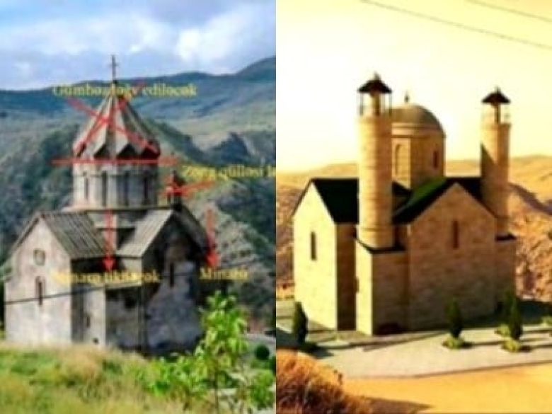 Он рассказал, что азербайджанская организация «Общественное объединение защиты памятников» опубликовала также фотографию проекта. Согласно проекту, демонтируются купола и колокольня, взамен будут пристроены два минарета. «Проект был утвержден согласно приказу президента Азербайджана Алиева. Подобный приказ Алиев дал еще тогда, когда находился с очередным незаконным визитом в оккупированном Гадрутском районе. Их основная цель-ликвидировать армянское культурное наследие во всех оккупированных армянских населенных пунктах. Церкви и учреждения, представляющие культурную ценность, построенные в период независимости, которые невозможно албанизировать, по приказу Алиева превращают в мечеть или другие сооружения», - сказал глава Центра. Овик Аванесов подчеркнул, что это явное военное преступление.