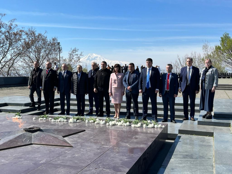 Сегодня делегация Республики Крым в сопровождении Айка Бабуханяна посетила Парк Победы и возложила цветы к Вечному огню мемориального комплекса "Мать Армения".