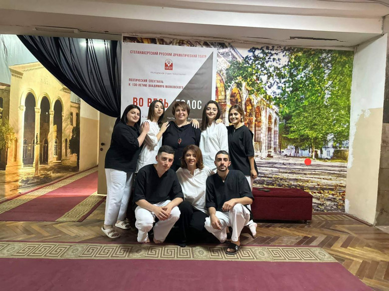 -Во время блокады Арцаха Степанкертский русский драматический театр поставил три премьерных спектакля. В конце декабря прошлого года наши зрители увидели новогоднюю комедию по мотивам Н. Птушкиной «Пока она умирала". В мае детская студия театра представила острую социальную драму для взрослых — сказку Е. Шварца «Дракон», а последняя премьера, о которой было сказано чуть выше, поэтический спектакль молодежной студии «Во весь голос».