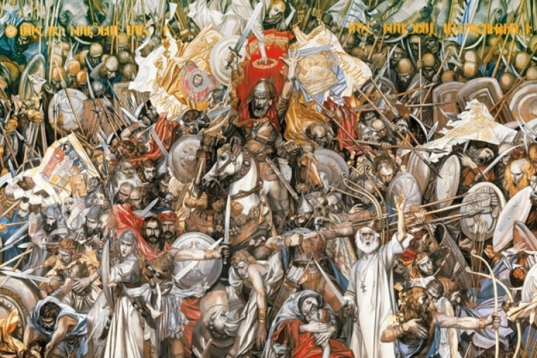 Аварайрская битва произошла 26-го мая 451 года на берегах реки Тхмут (современный Иран). Против регулярной 230-тысячной персидской армии, включавшей элитный полк «Бессмертных» и боевых слонов, выступило армянское войско численностью 66 тысяч. Большую часть войска составляло народное ополчение: женщины, монахи, дети и старики. Во главе армянского войска стоял спарапет Вардан Мамиконян. В этой битве обе стороны понесли большие потери, а сам Мамиконян пал смертью храбрых. Однако, встретив яростное сопротивление со стороны армян и понеся огромные потери, персы вынуждены были отказаться от посягательств на христианскую религию и национальную самобытность армянского народа. В книге историка V века Егише «О Вардане и войне армянской» приведены слова спарапета: «Смерть неосознанная есть смерть, смерть осознанная - бессмертие».