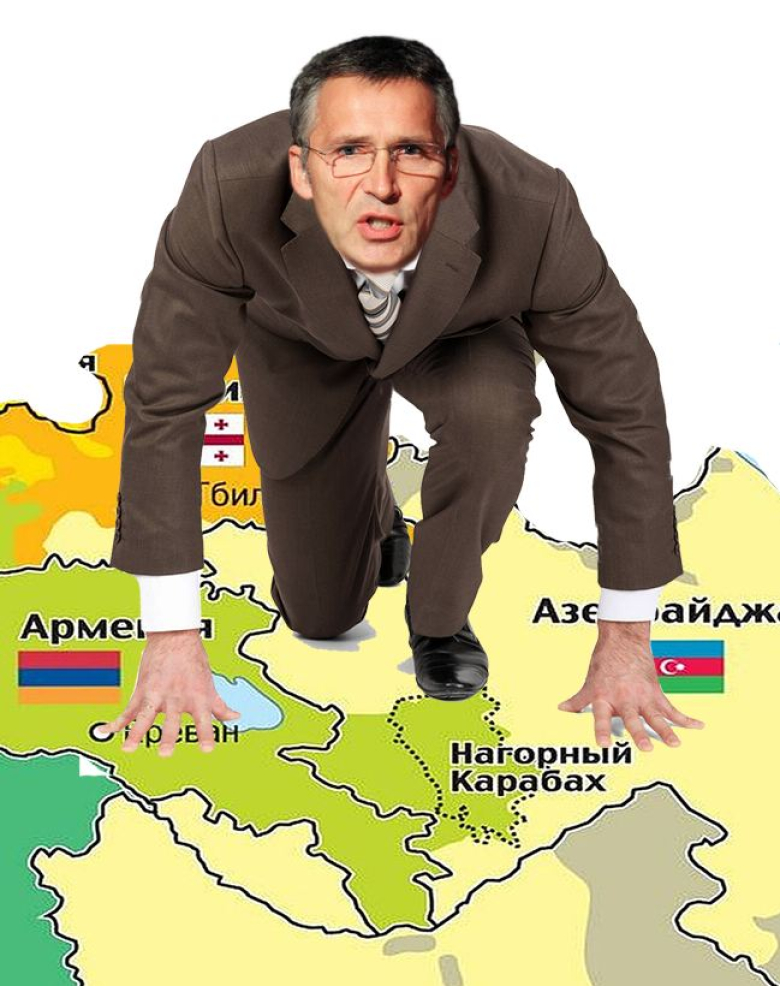 АРМЕНИЯ. <br> Вкладка в газете "КП в Армении"Генеральный секретарь НАТО Йенс Столтенберг завершил турне по Южному Кавказу. С 17 по 19 марта он посетил Азербайджан и Грузию, затем -- Армению. Тот факт, что Столтенберг оставил свою работу и приехал на Южный Кавказ в эти неоднозначные дни, конечно, не случайность. В Армении много говорят о том, что главной целью было дальнейшее усиление нынешних прозападных тенденций николовских властей. Возможно, есть и такая задача, но определенно основная цель гораздо глобальнее.