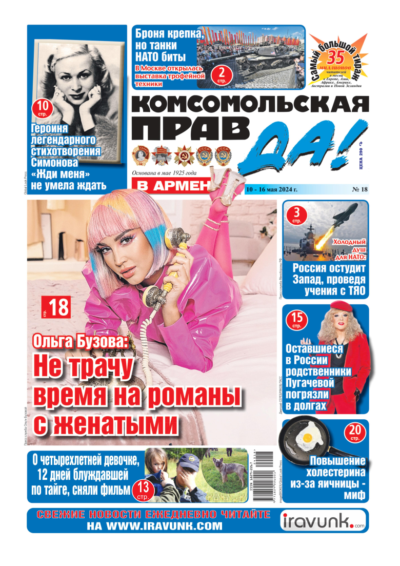Новый выпуск еженедельника «Комсомольская правда в Армении» - в продаже с 10 мая!