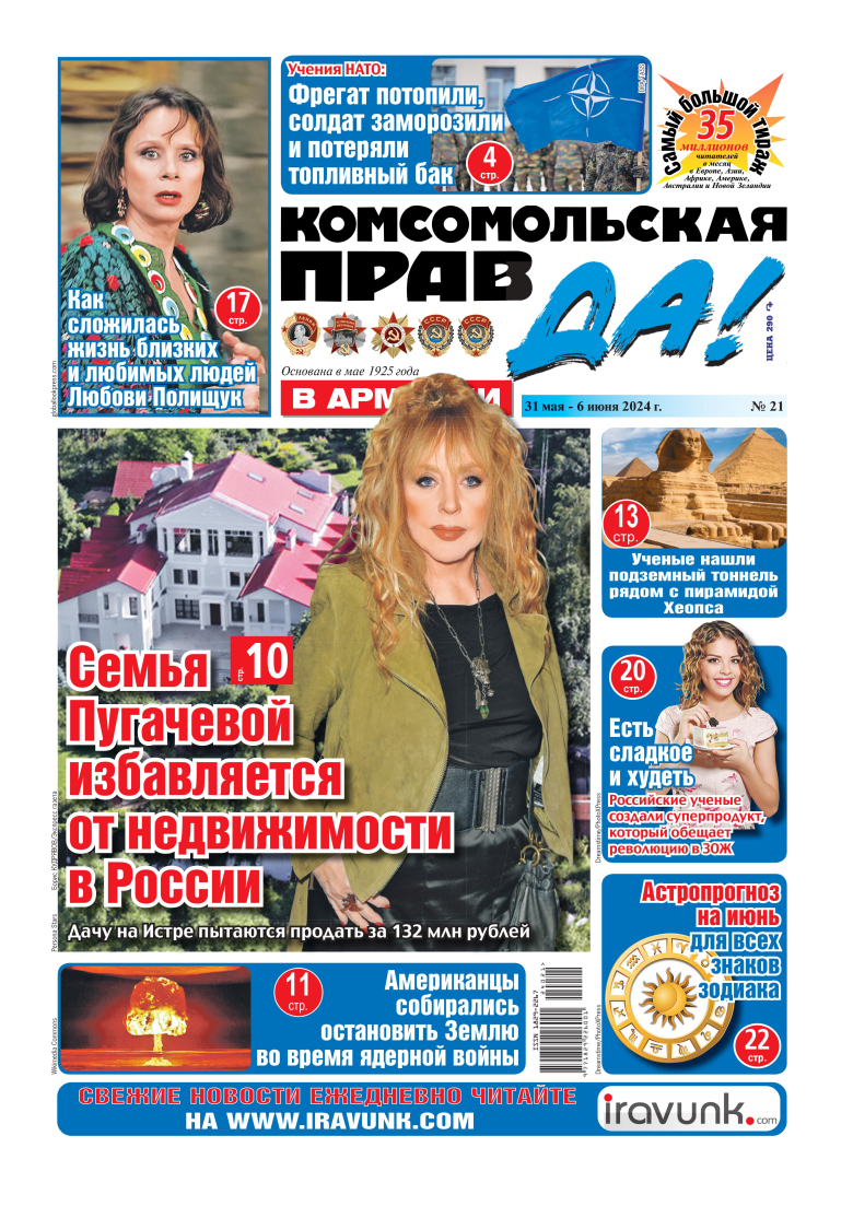 Новый выпуск еженедельника «Комсомольская правда в Армении» - в продаже с 31 мая!
