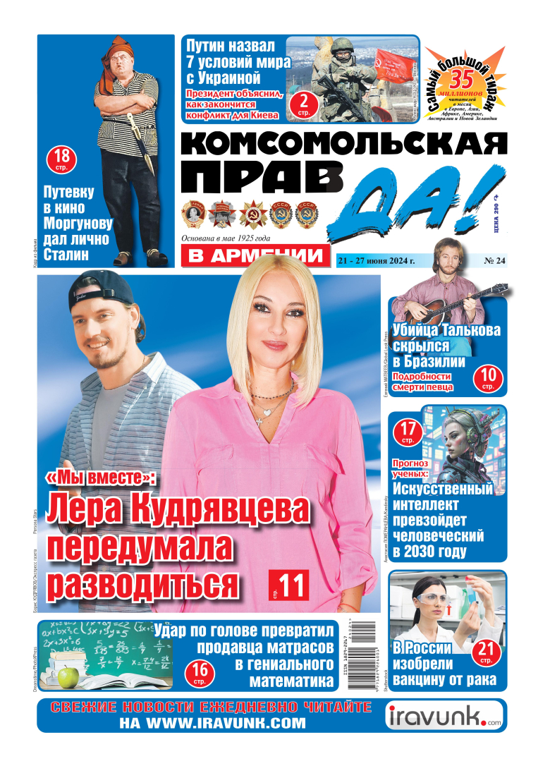 Новый выпуск еженедельника «Комсомольская правда в Армении» - в продаже с 21 июня!