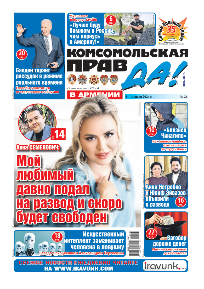 Новый выпуск еженедельника «Комсомольская правда в Армении» - в продаже с 5 июля!