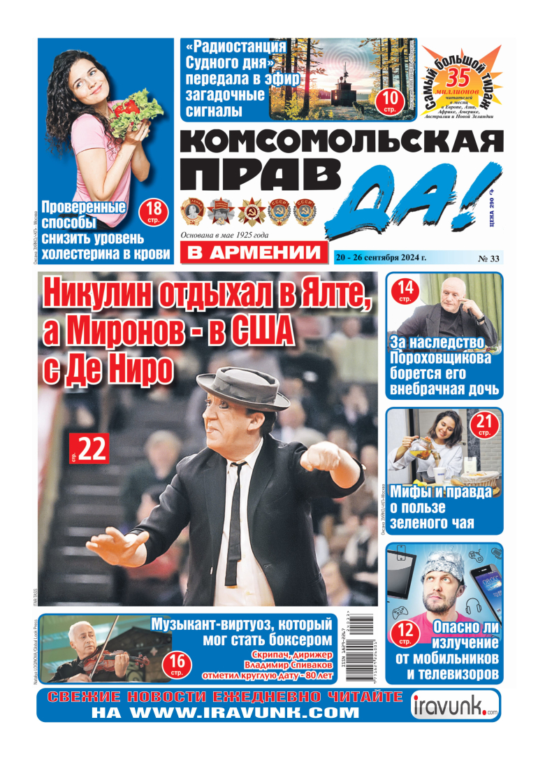 Новый выпуск еженедельника «Комсомольская правда в Армении» - в продаже с 20 сентября!
