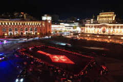 Արարատյան Հայրապետական թեմի երիտասարդները հրապարակի քարե գորգի վրա կանթեղներով ձ...
