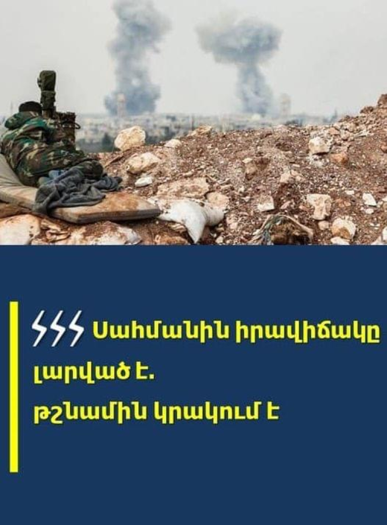 ՀՐԱՏԱՊ. Սահմանին իրավիճակը լարված է. Թշնամին կրակում է Թեմա 15 Հունիս, 2023 14:12 Կիսվել ՀՐԱՏԱՊ. Սահմանին իրավիճակը լարված է. Թշնամին կրակում է https://iravunk.com/sim/?p=258151&l=am/ Կիսվել
