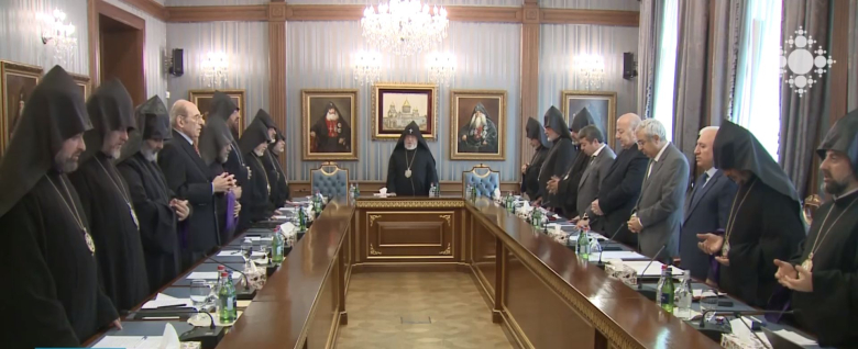 ԹեմաԳերագույն հոգևոր խորհրդի ժողովը նախագահում էր Գարեգին Բ Ամենայն Հայոց Կաթողիկոսը: Ժողովի առաջին օրը զեկույցով հանդես եկան Արցախի թեմի առաջնորդը և Արցախի նախկին պետնախարար Արտակ Բեգլարյանը: