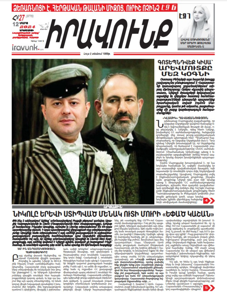 ⚡️⚡️«Իրավունք» թերթի այսօրվա տպագիր համարում կարդացե՛ք... Ներքաղաքական 12 Մարտ, 2024 0:47 Կիսվել • Այն կարող եք գնել ՀՀ ցանկացած կրպակից • Նախորդ տպագիր համարների PDF արխիվը` ԱՅՍՏԵՂ https://iravunk.com/sim/?p=278390&l=am/ Կիսվել