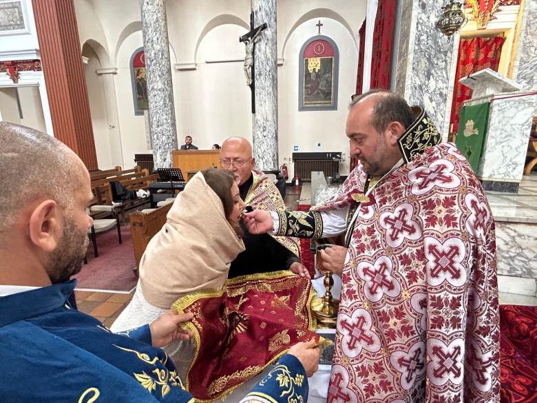 Պատարագը մատուցվեց Հայ Առաքելական Եկեղեցու Մեծ Բրիտանիայի եւ Իռլանդիայի հայոց թեմի առաջնորդ Գերաշնորհ Տեր Հովակիմ եպիսկոպոս Մանուկյանի կողմից՝ Սուրբ Հռիփսիմե կաթոլիկ եկեղեցում: Հանդիսավոր պատարագը տեղի ունեցավ Սուրբ Մարիամ Աստվածածնի Վերափոխման տոնի առիթով, որը Հայ Առաքելական Եկեղեցում սկսվում է օգոստոսի 18-ին եւ տեւում է 9-ը օր: