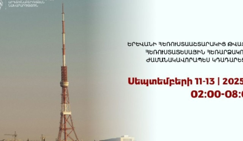 Երևանի հեռուստաաշտարակից թվային հեռարձակումը ժամանակավորապես կդադարեցվի