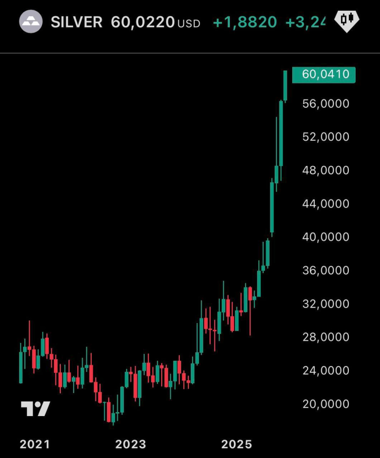 Արծաթի գինը պատմության մեջ առաջին անգամ գերազանցել է 60 դոլարը մեկ ունցիայի համար