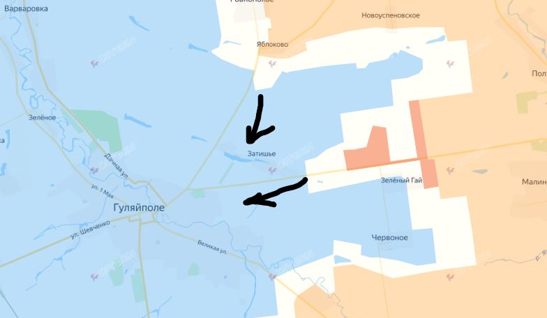 Պատկերը հետեւյալն է: Ուկրաինական աղբյուրները հրապարակում են Գուլյայպոլեի հատվածում եղած պաշտպանական համակարգերի սխեման (Քարտեզներում)` արձանագրելով, որ Յաբլոկովոն գրավելով, ռուսական ուժերն արդեն անցել են ուկրաինական պաշտպանության թիկունք: Ու հիմա, հիմնական պաշտպանական գծի թիկունքով շարժվում են դեպի հարավ` Զատիշե: Դրանով Գուլյայպոլեի արեւելյան հատվածում առաջացած «գրպանի» ուկրաինական ուժերին թողնում են երկընտրանքի առաջ` կա´մ արագորեն փախչել կա´մ կմնան շրջապատման մեջ: