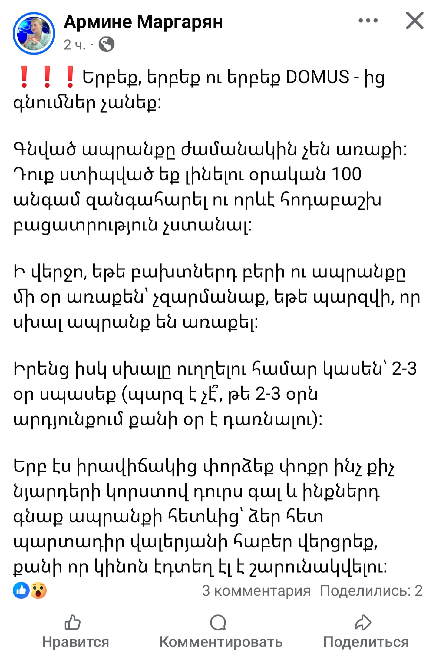 Երբեք, երբեք ու երբեք DOMUS - ից գնումներ չանեք. քաղաքացին ահազանգում է