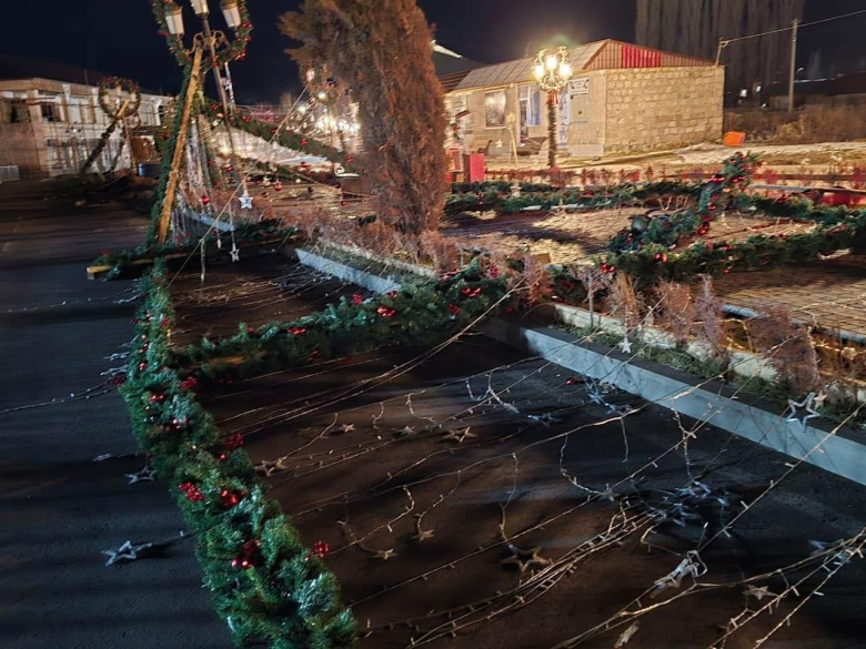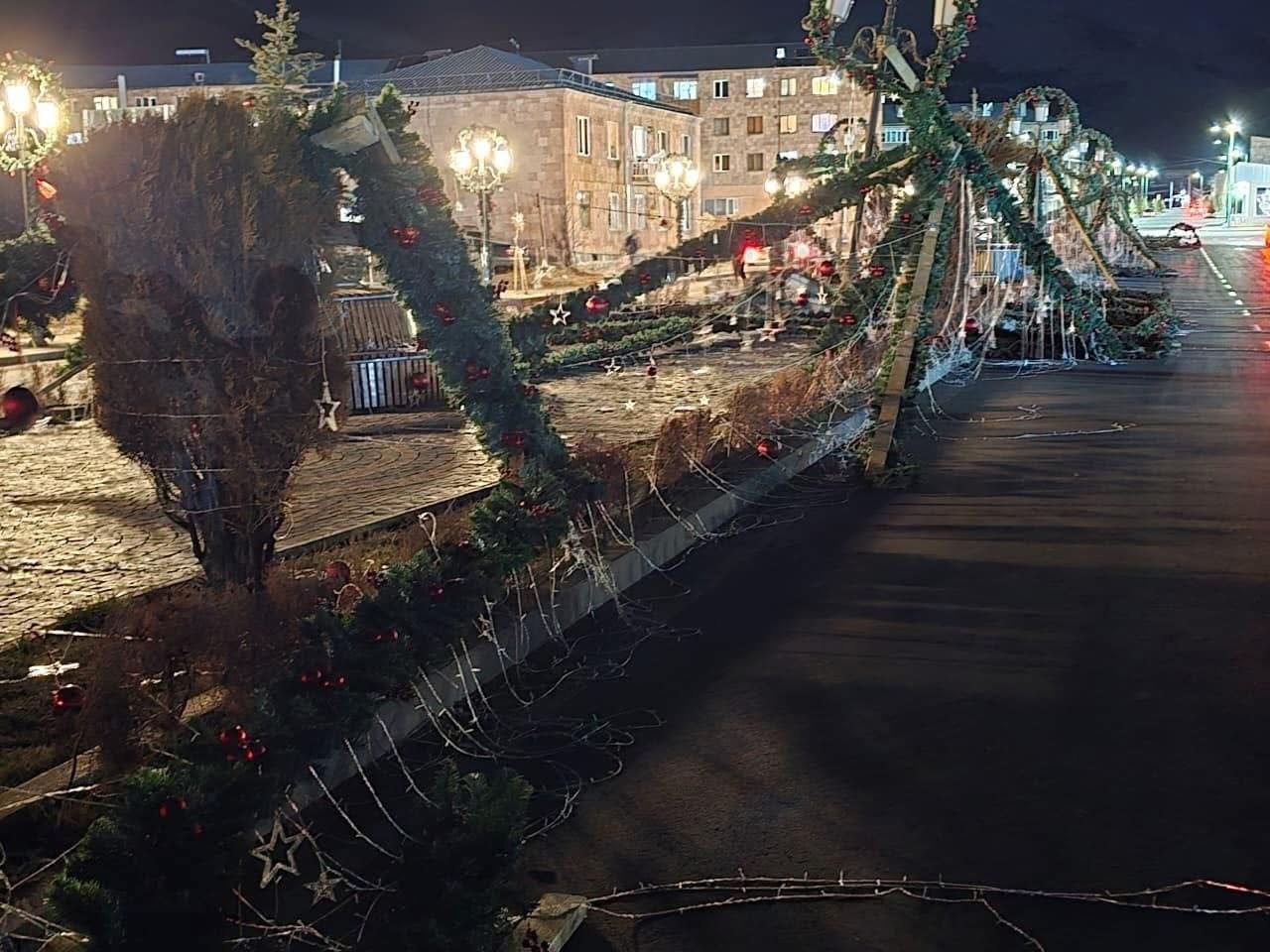 Ուժեղ քամին կոտրել ու տապալել է Ապարանի գլխավոր տոնածառը, վնասել ամանորյա զարդարանքները