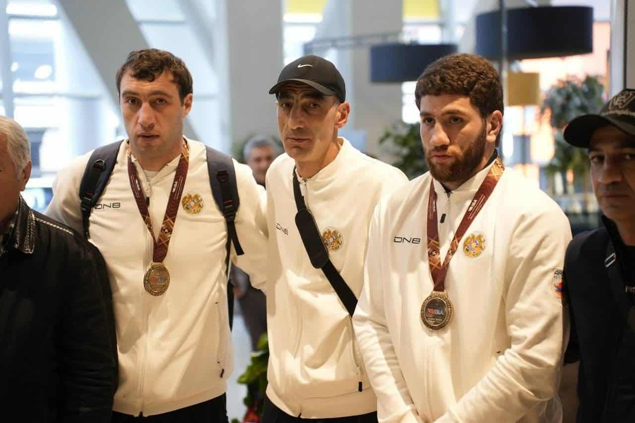 ՍպորտԲռնցքամարտի Հայաստանի մեծահասակների հավաքականը ժամանեց Երևան։ «Զվարթնոց» օդանավակայանում մեր կաշվե ձեռնոցի մարտիկներին դիմավորեցին հարազատներ, մարզասերներ, երկրպագուներ։ ՌՈՒԴԻԿ ՄԿՐՏՉՅԱՆԻ գլխավորությամբ, մեր ընտրանին Դուբայում ավարտված IBA ԱԱ֊ից, հայրենիք է վերադարձել պատմական արդյունքով, առաջին անգամ Աշխարհի առաջնությունից բերելով 5 մեդալ։ Բրոնզե մեդալակիրներ են դարձել ՀՈՎՀԱՆՆԵՍ ԲԱՉԿՈՎԸ, ԴԱՎԻԹ ՉԱԼՈՅԱՆԸ, ՌՈՒԴՈԼՖ ԳԱՐԲՈՅԱՆԸ, ԱՐԹՈՒՐ ԲԱԶԵՅԱՆԸ և ՌԱՖԱՅԵԼ ՀՈՎՀԱՆՆԻՍՅԱՆԸ։