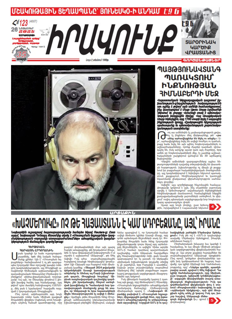 ⚡️⚡️«Իրավունք» թերթի այսօրվա տպագիր համարում կարդացե՛ք...