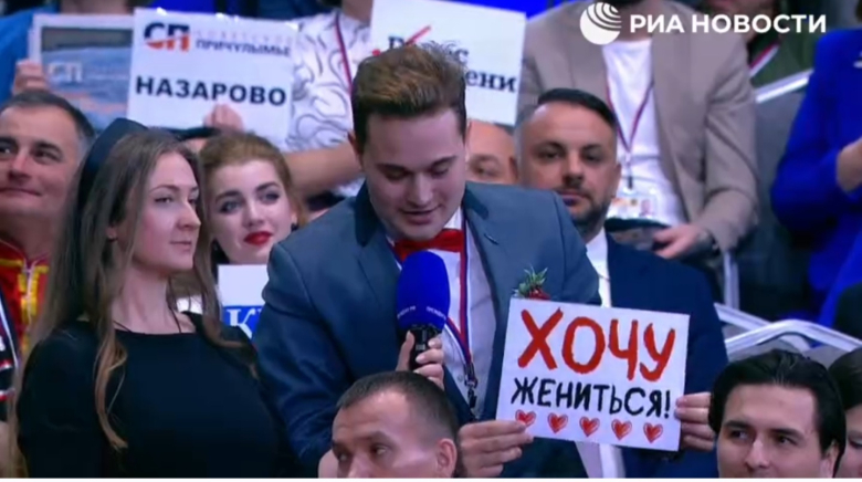 Եկատերինբուրգից ժամանած լրագրողը Վլադիմիր Պուտինի հետ անցկացվող ասուլիսի ընթացքում ամուսնության առաջարկ է արել իր ընկերուհուն և ՌԴ նախագահին հրավիրել հարսանիքին։