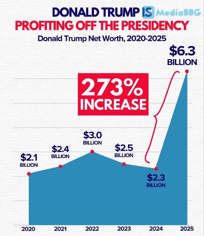 Նախկինում այն կազմում էր 2.3 միլիարդ դոլար, հիմա՝ 6.3 միլիարդ դոլար։ Այսինքն՝ նա նախագահի պաշտոնում մեկ տարուց էլ պակաս ժամանակահատվածում «վաստակել» է մոտ 4 միլիարդ դոլար։