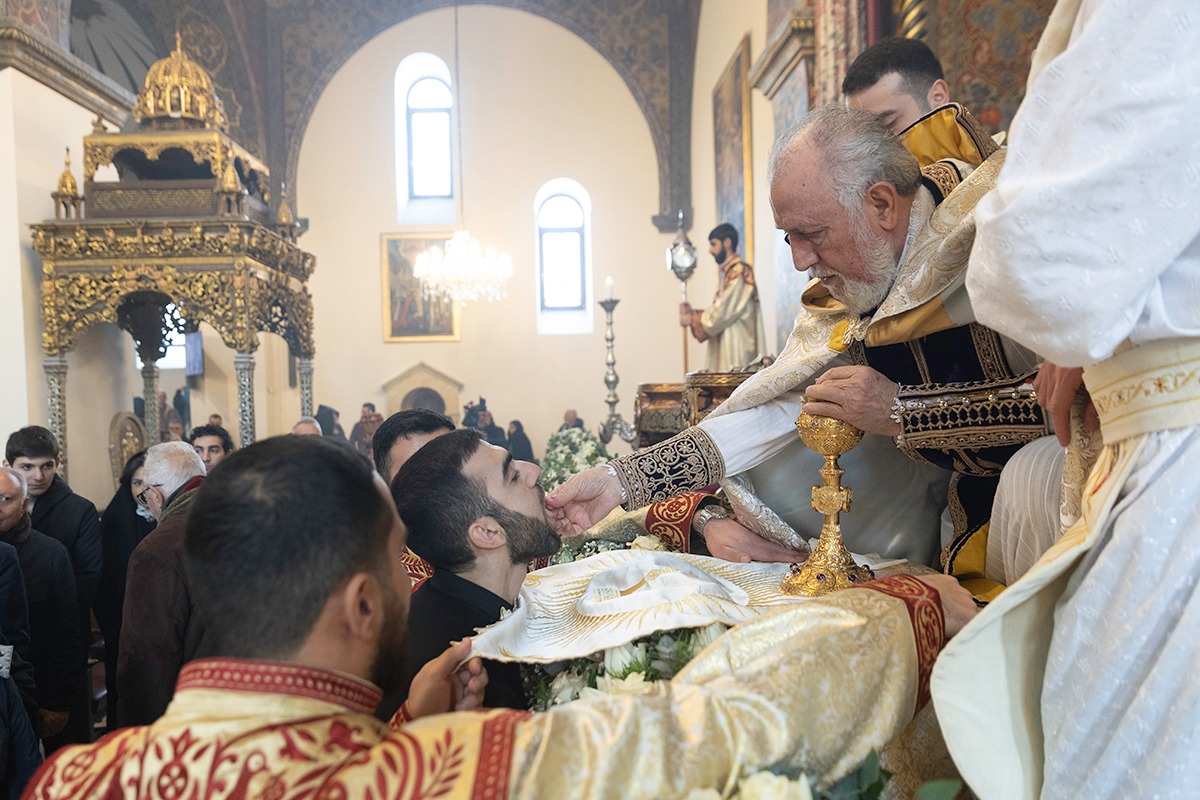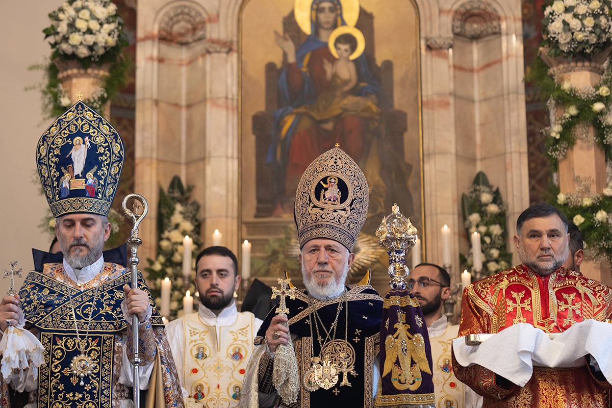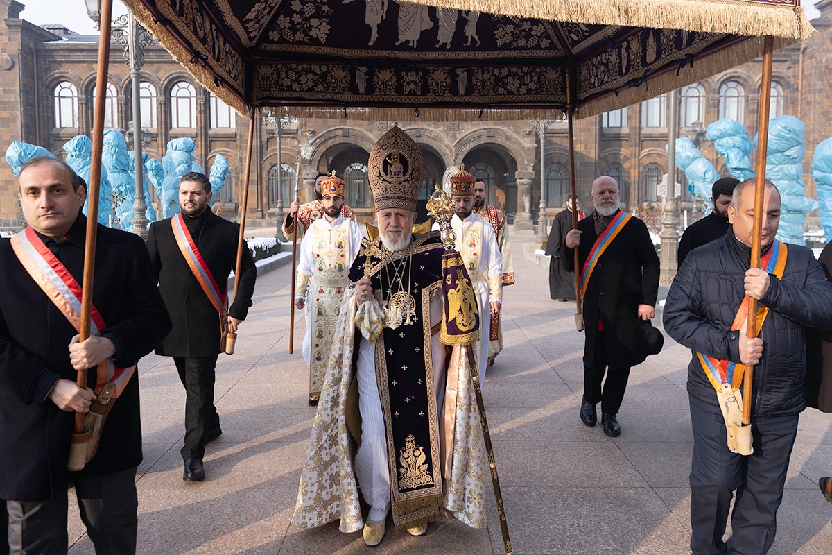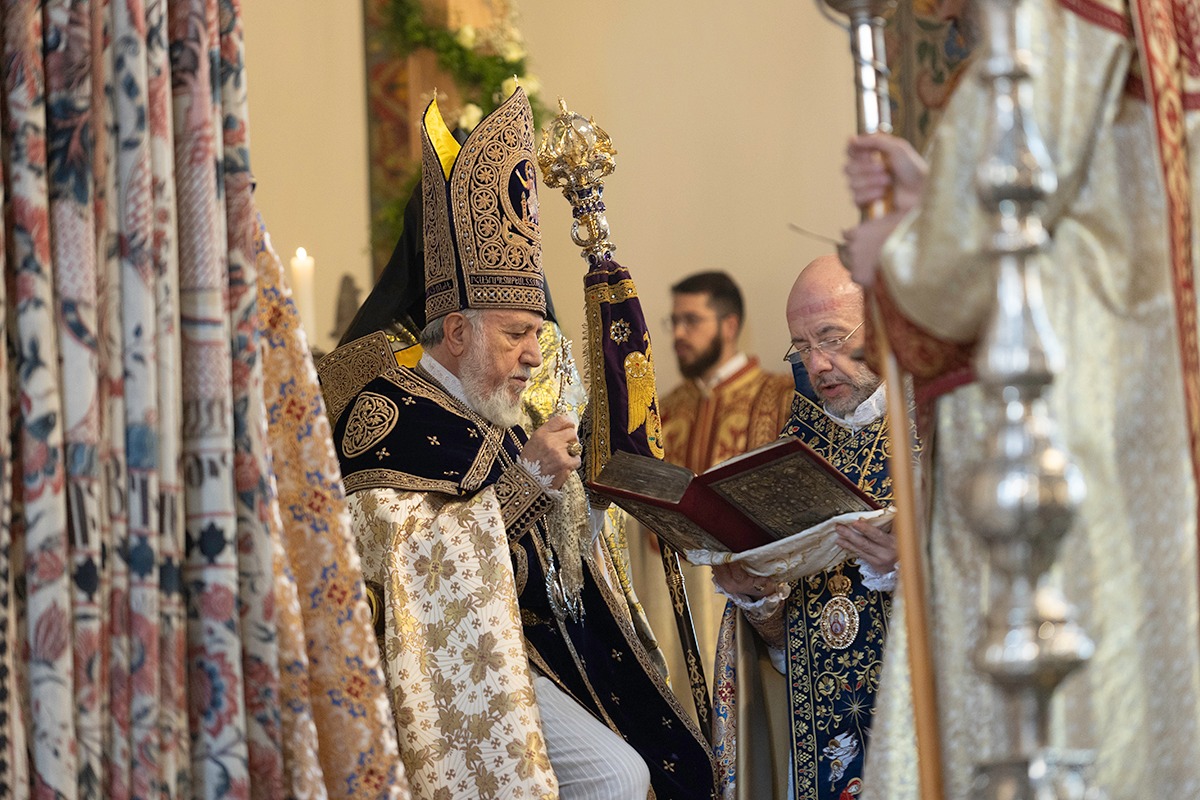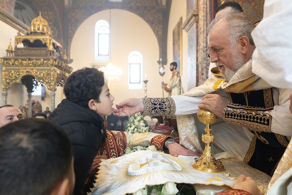 Սրբազան արարողությանը Հայոց Հովվապետին որպես առընթերականներ սպասավորում էին Գերաշնորհ Տ. Մուշեղ եպիսկոպոս Բաբայանը և Գերաշնորհ Տ․ Դանիել եպիսկոպոս Ֆընտըգյանը։ Սուրբ Պատարագի ընթացքում Ամենայն Հայոց Կաթողիկոսը աշխարհասփյուռ հավատավոր հայ ժողովրդին հղեց հայրապետական իր պատգամը՝ փոխանցելով «Քրիստոս ծնաւ եւ յայտնեցաւ» կենարար ավետիսը: