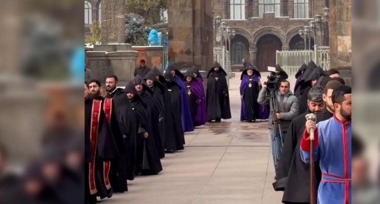 Վեհափառը եկեղեցական թափորի ուղեկցությամբ շարժվեց Մայր Տաճար` մասնակցելու Սուրբ Պատարագին