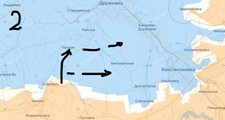 Նովոպավլովկան գրավելով, ռուսների համար բացվում է դեպի Տորսկոյե և Պավլովկա ուղղությունը: Սրանք փոքրիկ գյուղեր են, սակայն դրանց գրավումը կունենա ռազմավարական նշանակություն: Այն է` դեպի արեւելք հիմնականում քիչ բնակեցված հատված է, ուկրաինական ուժերը չունեն լուրջ պաշտպանական համակարգ, ինչը ռուսներին հնարավորություն է տալիս հարվածել Կոնստանտինովկայի արեւմտյան թեւի ուղղությամբ` նաեւ դուրս գալով Դրուժովկայի հարավային հատված (Քարտեզ 2):